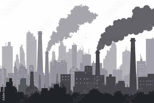 Naklejka premium Urban Silhouette of Industry with Smoky Chimneys and Factory Buildings