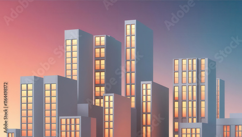 Obraz premium Urban skyline at sunset modern architecture cityscape evening aesthetic...