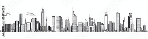 © Ikram, Naklejka premium Urban Skyline Drawing