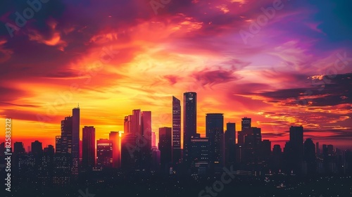 Fototapeta premium Urban skyline during sunset