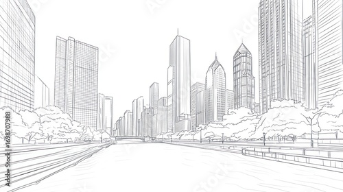 © Imam Soleh, Fototapeta premium Urban skyline line drawing