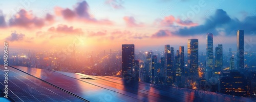 © ImagePulse, Fototapeta premium Urban skyline powered by renewable energy sources vibrant cityscape embracing sustainability innovation