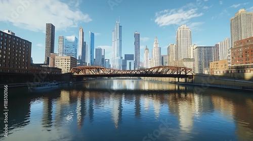 Fototapeta premium Urban Skyline Reflected in a Calm River