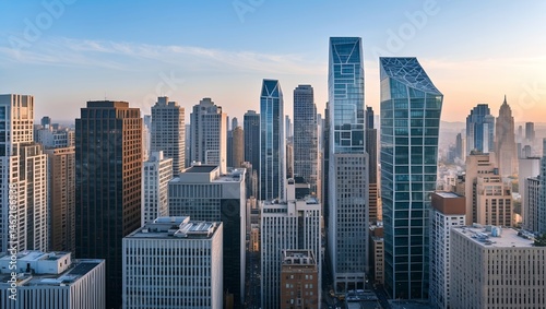 © Artem, Fototapeta premium Urban skyline showcasing geometric high-rise architecture