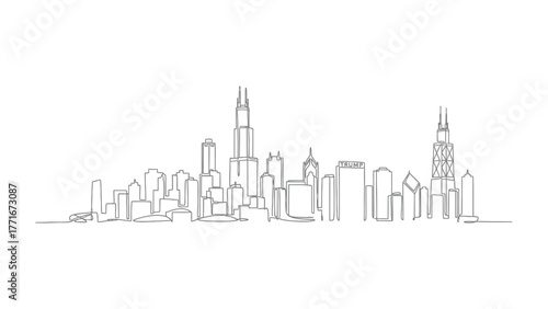 Fototapeta premium Urban Skyline Silhouette: A minimalist monochrome sketch showcases the sleek outline of a modern city skyline. Featuring elegant lines.