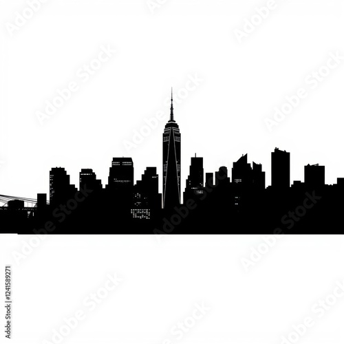 Naklejka premium Urban skyline silhouette at dusk with tree branches silhouetted skyline cityscape architecture illustration building city vector
