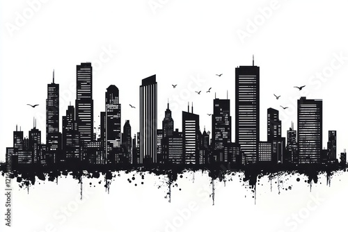 Obraz premium Urban skyline silhouette with a collection tall buildings in a sprawling metropolis