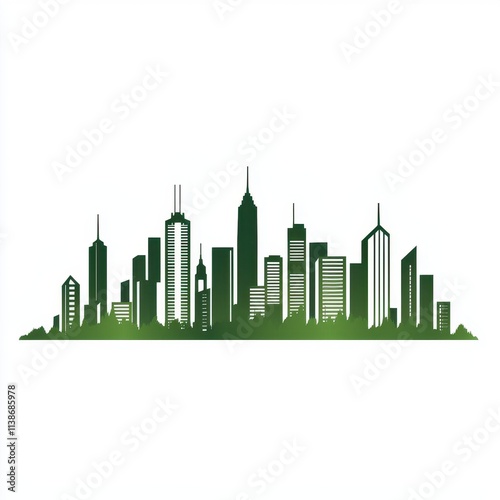 Fototapeta premium Urban Skyline Silhouette with Green Gradient for Eco-Friendly Themes