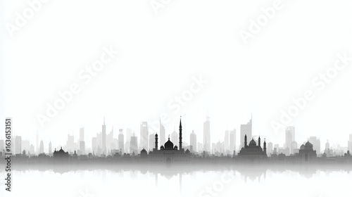Obraz premium Urban skyline suggested by a single uninterrupted line, simple peaks and domes, modern editorial feel.