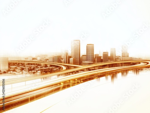 Fototapeta premium Urban skyline sunrise city viewpoint photography bright environment golden...