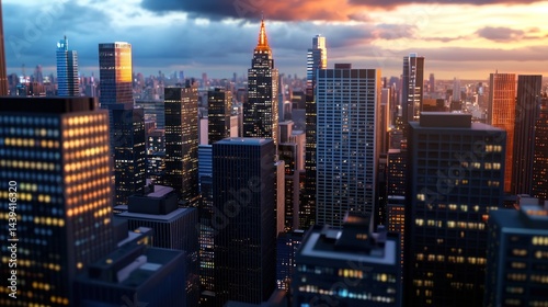 Obraz premium Urban Skyline Sunset Cityscape; Evening city view
