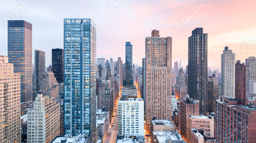 © Kowit, Obraz premium Urban skyline view city landscape vibrant atmosphere