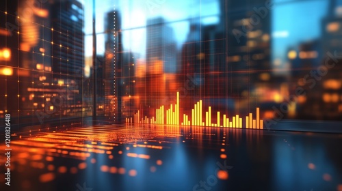 Fototapeta premium Urban skyline with digital sound wave visualization reflecting modern technology and energy in city atmosphere