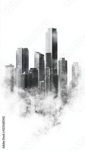 © Kitta Studio, Naklejka premium Urban skyline with misty effects and tall buildings in monochrome
