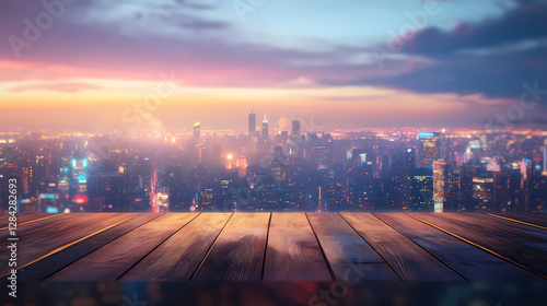 Fototapeta premium urban skyline wooden tabletop
