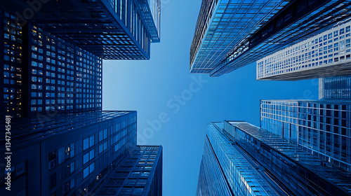 © julio, Fototapeta premium Urban Skyscrapers At Dusk