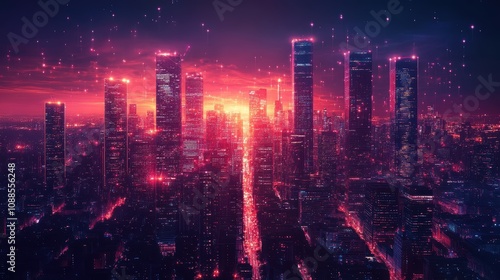 © Chandlerlikes, Fototapeta premium Urban smart city with integrated 5G networks, digital communication, and IoT devices