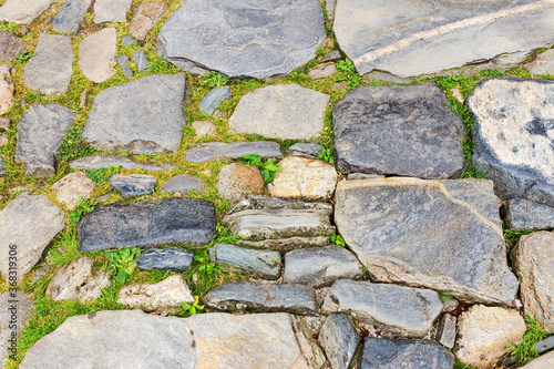 Obraz premium Urban stone paving. Texture, background, selective focus