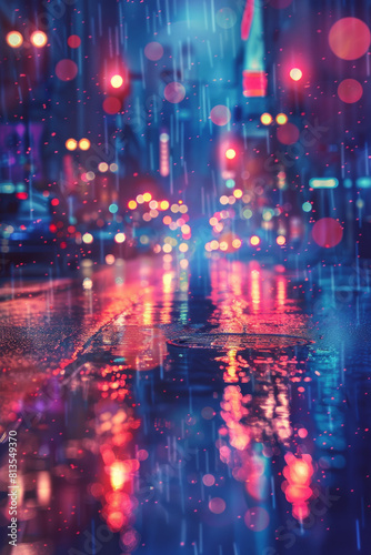 Fototapeta premium Urban street background for poster, cinematic lighting, night scene, bokeh