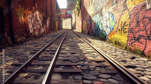 © Fauzerene, Naklejka premium Urban Street Scene with Vibrant Graffiti Art