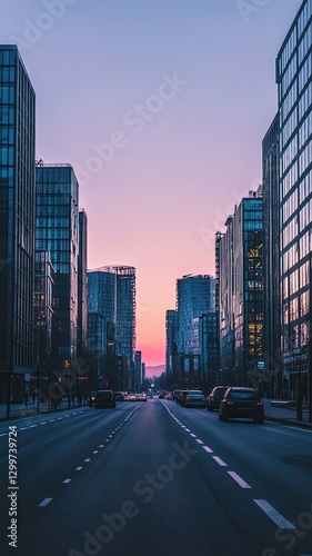 © Pattypatt, Fototapeta premium Urban street view with modern skyscrapers.