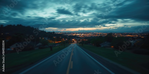 © TheWaterMeloonProjec, Fototapeta premium Urban streets and village pathways beneath a cloudy evening sky, ambient light setting