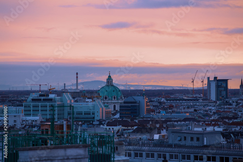 Fototapeta premium Urban sunset landscape of city of Vienna