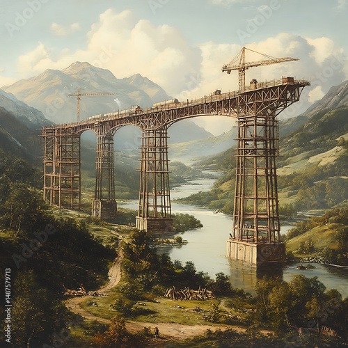 © Nayon, Fototapeta premium Urban sunset skyline with construction crane dominating foreground view high resolution picture
