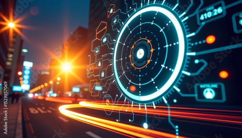 © cookiecutter, Obraz premium Urban Technology Landscape with Circles