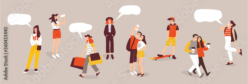 © olgache, Fototapeta premium Urban teenagers.Young fashion people.Set of street style youngsters.