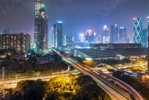 © fanjianhua, Fototapeta premium urban traffic with cityscape in Hong Kong,China.