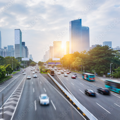© fanjianhua, Naklejka premium urban traffic with cityscape in Hong Kong,China.