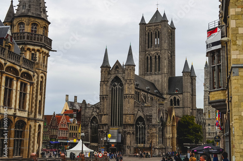 © EduBFoto, Fototapeta premium Urban View of the Monumental Cathedral of Ghent