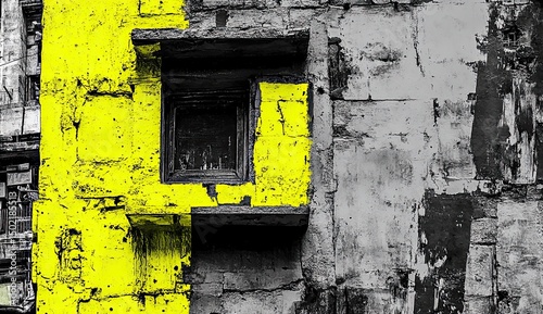 © Aul, Naklejka premium Urban wall with yellow stripe and window