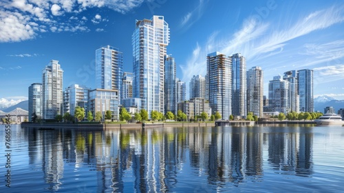Fototapeta premium Urban Waterfront With Skyscrapers, outdoor