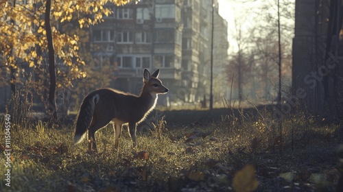 Fototapeta premium Urban Wildlife: A Deer in the City's Golden Hour