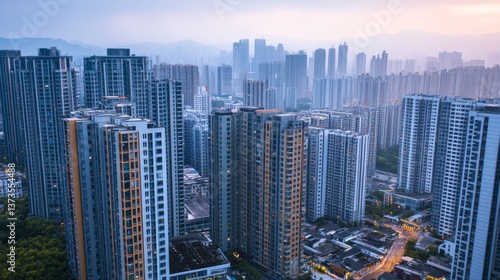 Obraz premium Urbanization and high-density housing near transportation hubs for...