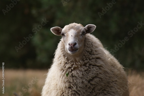 © Ela, Fototapeta premium Urocze stadko owiec w typie merynosów spotkane podczas pieszej wędrówki.