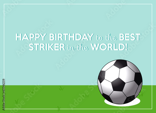 © rosanna p, Obraz premium urodzinowa kartka z życzeniami z piłką na boisko do piłki nożnej i jasne niebo