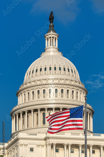 Obraz premium US Capitol Building with American flags is the home of the United States Congress in Washington D.C, USA.