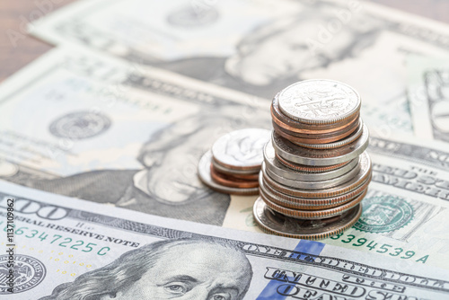 Fototapeta premium 米ドル紙幣とコイン US dollar banknotes and coins