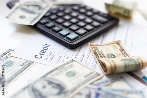 © Angelov, Fototapeta premium US dollar banknotes on charts graphs paper. Financial development, Banking Account, Statistics, Investment Analytic research data economy.