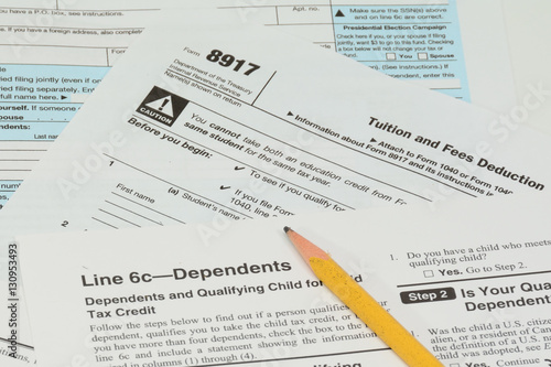 © Bill Doss, Obraz premium US IRS Form 1040 and 8917 worksheet