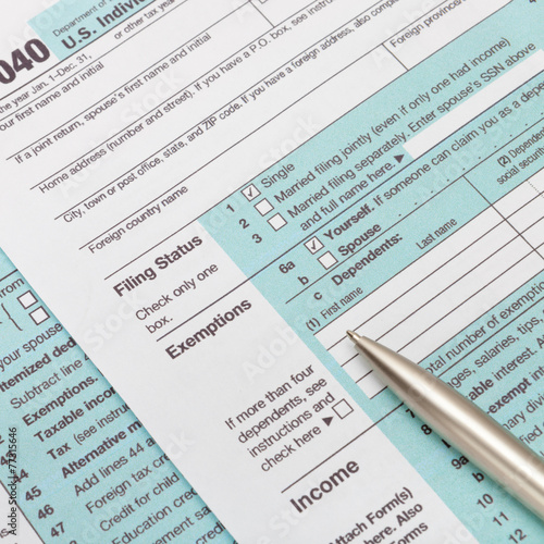 © niyazz, Fototapeta premium US 1040 Tax Form and silver ball pen - studio shot