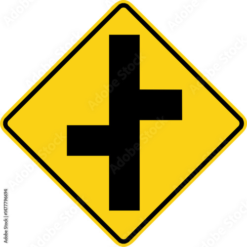Fototapeta premium US Warning Sign, Offset side roads W2-7