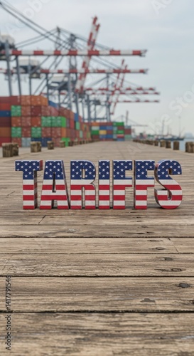 © Owen Helai, Fototapeta premium USA American Flag Tariffs Text Port Background