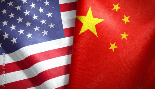 © Senja, Fototapeta premium USA and China Flags A Symbol of International Relations and Global Politics