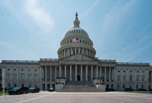 Naklejka premium USA Capitol. Washington DC skyline featuring the Capitol. Senate and House USA building. USA government seat in District of Columbia. The Capitol building. Capital of democracy.