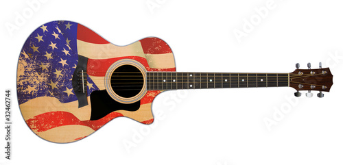 © bertys30, Obraz premium usa flag on acoustic guitar