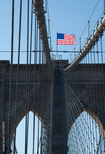 © Martin Lehotkay, Fototapeta premium USA flag on brooklyn bridge